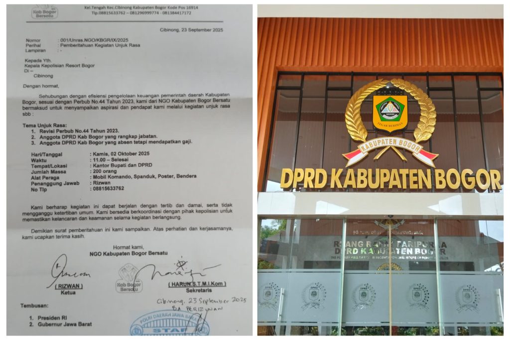 BOGOR, Rajawali Sriwijaya – Polemik seputar Peraturan Bupati (Perbup) No. 44 Tahun 2023 tentang kenaikan anggaran tunjangan DPRD Kabupaten Bogor memasuki babak baru. Rencana aksi unjuk rasa besar-besaran akan digelar pada Kamis, 2 Oktober 2025, dengan titik konsentrasi massa di Kantor Bupati Bogor dan Gedung DPRD Kabupaten Bogor.