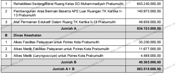 Sementara itu, pembelian alat kesehatan (Alkes) yang diperuntukkan bagi Polres Kota Prabumulih juga dianggarkan melalui Dinas Kesehatan namun tidak disertai Naskah Perjanjian Hibah Daerah (NPHD) sebagaimana diatur dalam ketentuan hibah pemerintah daerah.