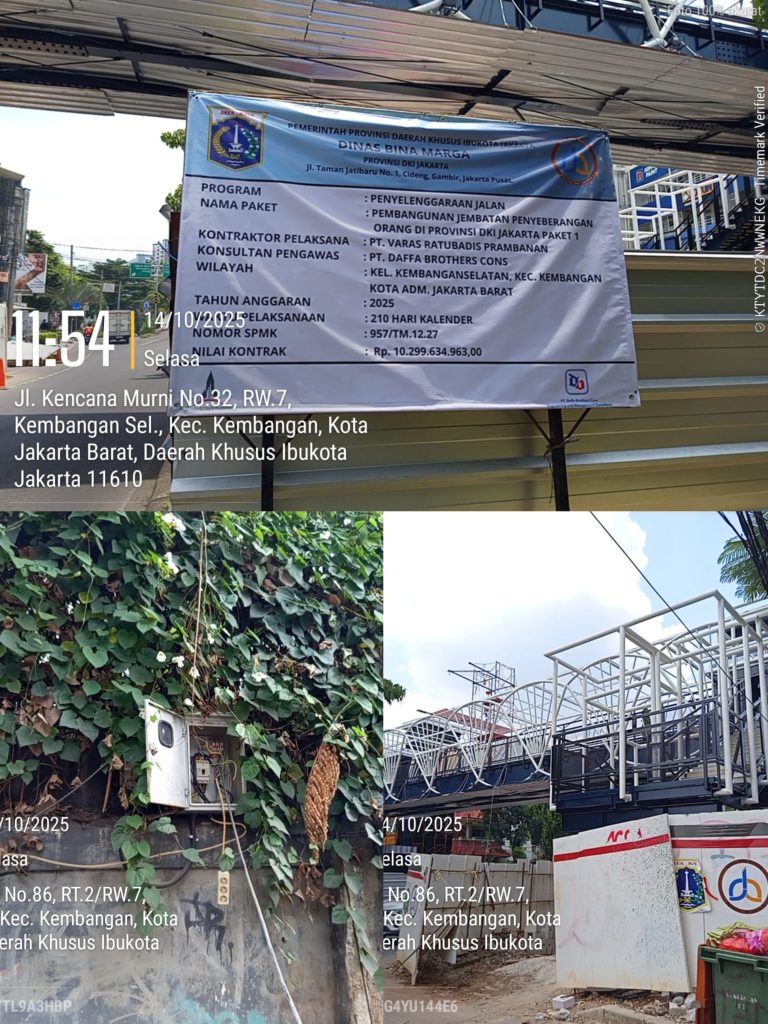 Jakarta Barat, 24 Oktober 2025 – Hasil investigasi LSM Kemilau Cahaya Bangsa Indonesia (KCBI) mengungkapkan bahwa pembangunan Jembatan Penyeberangan Orang (JPO) di Jalan Kencana Murni No. 32, RW.07 Kembangan Selatan, Kecamatan Kembangan, Jakarta Barat, menuai tanda tanya. Proyek yang dikerjakan oleh PT. Varas Ratubadis Prambanan ini memiliki anggaran fantastis sebesar Rp 10.299.634.963 yang bersumber dari APBD.
