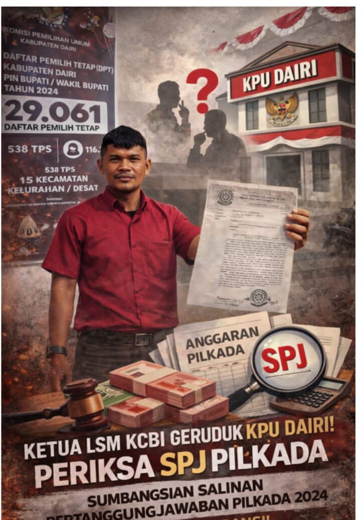 Langkah ini diambil setelah LSM KCBI mengirimkan surat keberatan resmi dengan nomor 007/PC-LSM KCBI/KBR/KPU-D/I/2026 sebagai tanggapan atas dua surat dari KPU Kabupaten Dairi dengan nomor 12/HM.03.2-SD/1211/1/2026 dan 11/HM.03/2/-SD/1211/1/2026 yang diterima pada tanggal 12 Januari 2026.