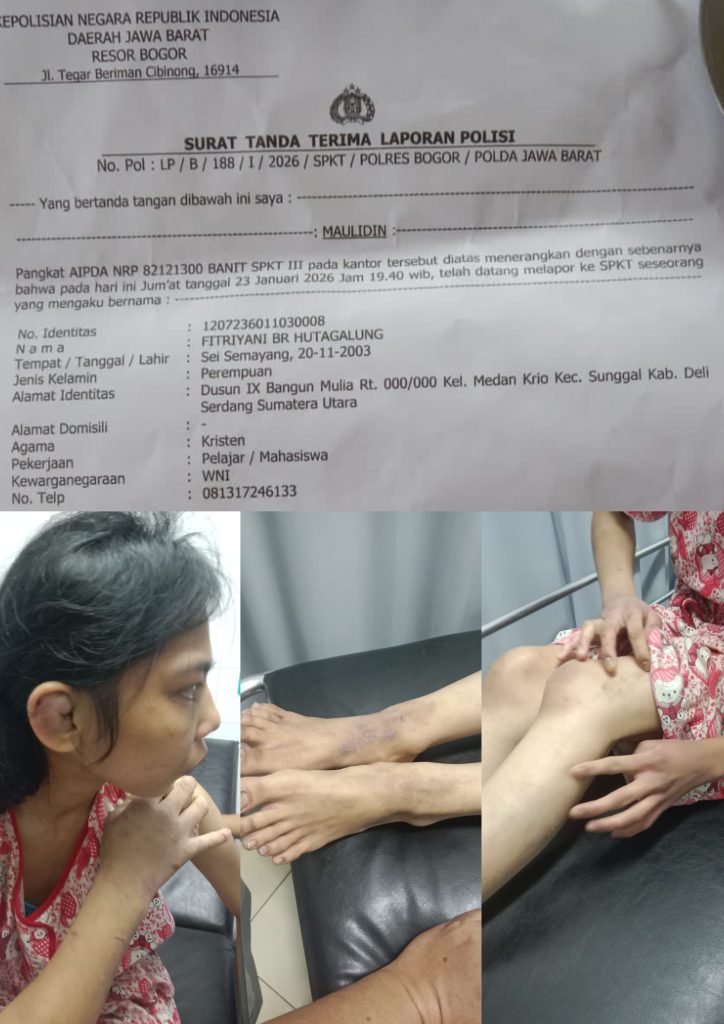 BOGOR, Rajawali Sriwijaya– Seorang perempuan berinisial FBRH (22) resmi melaporkan dugaan tindak pidana kekerasan dalam rumah tangga (KDRT) ke Polres Bogor. Laporan tersebut diterima oleh SPKT Polres Bogor pada Jumat, 23 Januari 2026, sekitar pukul 19.40 WIB, sebagaimana tercantum dalam Surat Tanda Terima Laporan Polisi (STTLP).